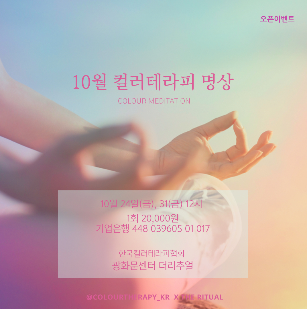 ½ÅûÀ» ¿øÇÏ´Â ºÐµéÀº ÀÔ±Ý ÈÄ 070 7755 4222·Î ¿¬¶ôÁֽðųª kcolourtherapy@naver.comÀ¸·Î ¿¬¶ôó ³²°ÜÁÖ½Ã¸é µË´Ï´Ù.