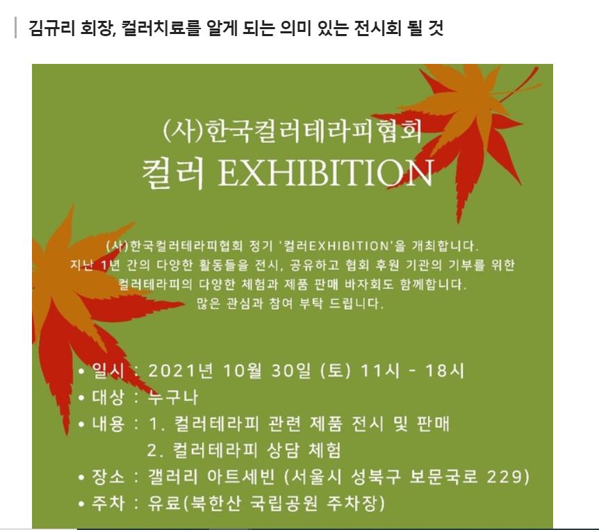 Çѱ¹Ä÷¯Å×¶óÇÇÇùȸ, ½É¸®Àû ¼Ò¿Ü°èÃþ À§ÇÑ ¡®Ä÷¯ Àü½Ãȸ¡¯ °³ÃÖ < ¹®È < ±â»çº»¹® - À§Å¬¸®¿À´Ã (weeklytoday.com)