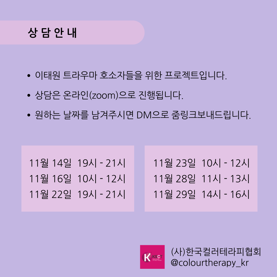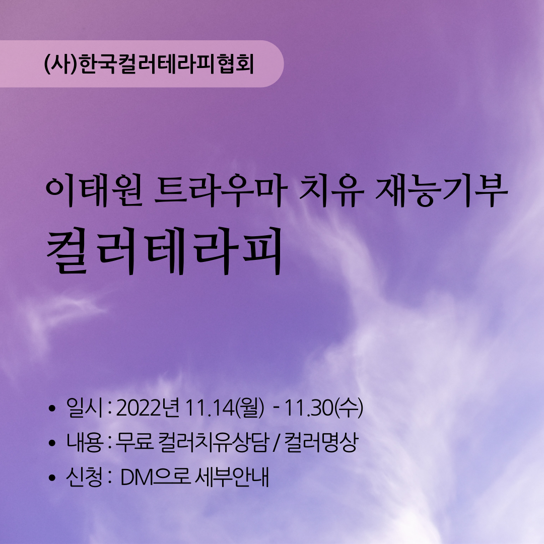 Çѱ¹Ä÷¯Å×¶óÇÇÇùȸ¿¡¼ ÀÌÅ¿ø Æ®¶ó¿ì¸¶ Ä¡À¯ Ä÷¯Å×¶óÇÇ ÇÁ·Î±×·¥À» Áö¿øÇÕ´Ï´Ù. 11¿ù 14ÀÏ ~ 11¿ù 30ÀÏ µ¿¾È ÁøÇàµÇ¸ç ÀÌÅ¿ø Æ®¶ó¿ì¸¶ È£¼ÒÀÚ¸¦ ´ë»óÀ¸·Î ÇÕ´Ï´Ù. ÀÌÅ¿ø Âü»ç·Î Èûµç ½Ã±â¸¦ º¸³»°í °è½Å ºÐµé °¡±îÀÌ¿¡ Çѱ¹Ä÷¯Å×¶óÇÇÇùȸ°¡ ÇÔ²² ÇϰڽÀ´Ï´Ù.
