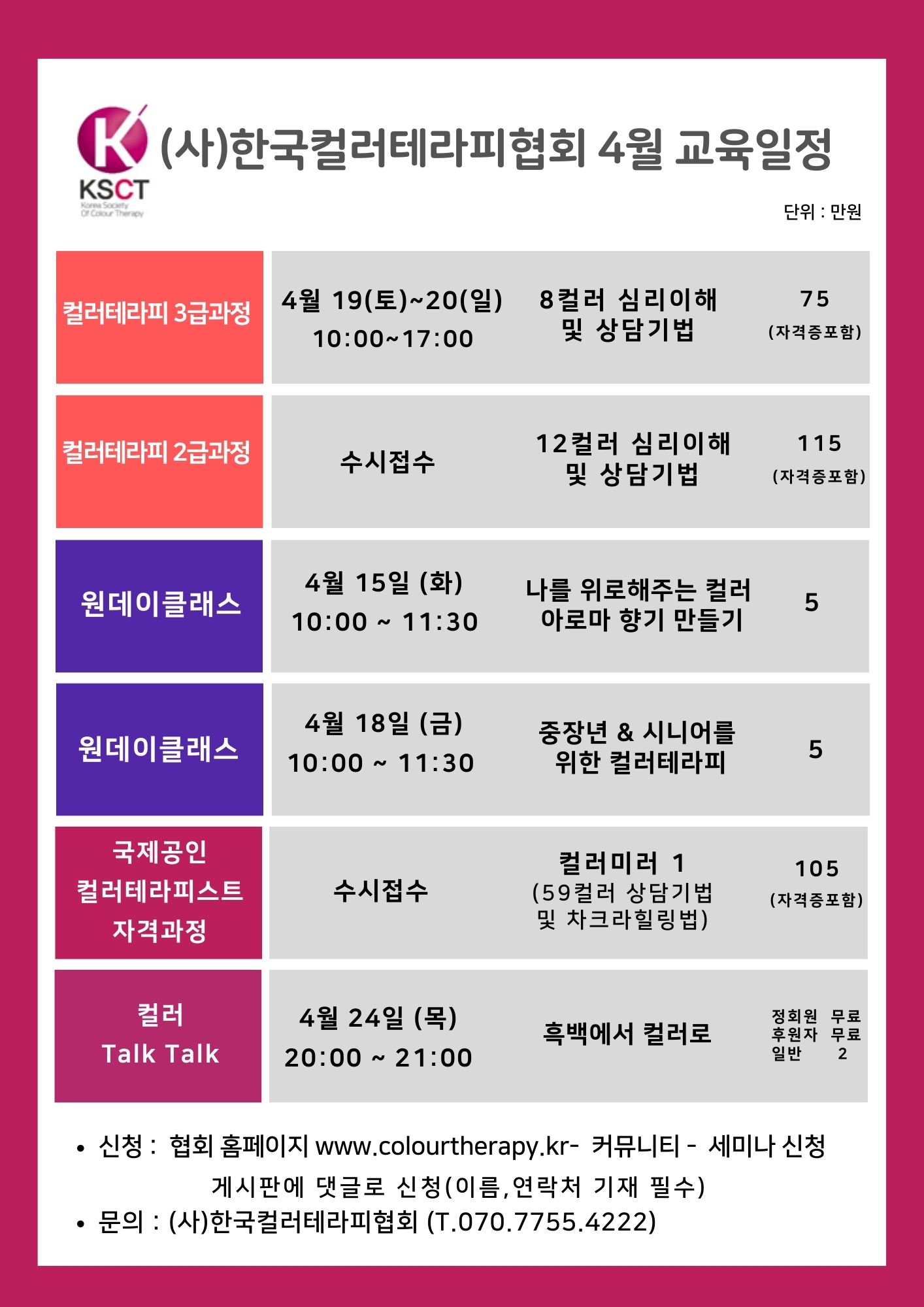 Çѱ¹Ä÷¯Å×¶óÇÇÇùȸ 4¿ù ±³À°ÀÏÁ¤ÀÔ´Ï´Ù