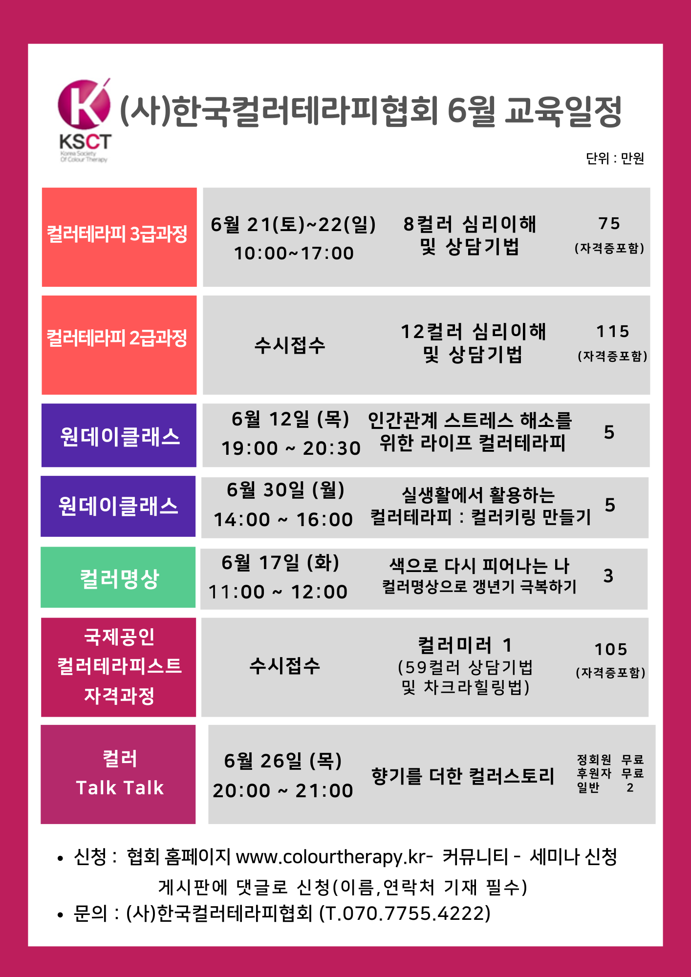 Çѱ¹Ä÷¯Å×¶óÇÇÇùȸ 6¿ù ±³À°ÀÏÁ¤ÀÔ´Ï´Ù
